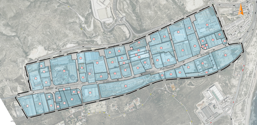 En este apartado se pone a disposición el plano oficial del Área Empresarial Aguamarga, donde se delimita con precisión el ámbito territorial de la EGM: viales, parcelas y espacios públicos incluidos.