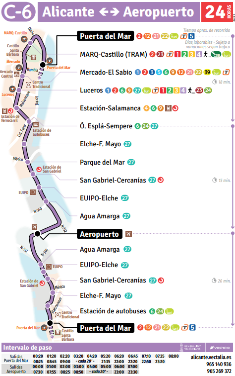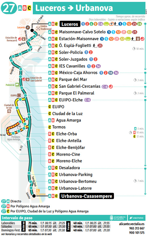 Paradas en Av. de Elche (N-340), a pocos minutos a pie de Aguamarga.