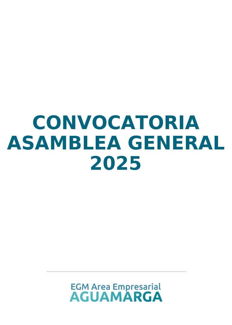 Luis Mascaró Capdevila, Presidente de la Entidad de Gestión y Modernización (EGM) Área Empresarial AGUAMARGA , por la presente le convoca a la Asamblea General que, con carácter Ordinario, tendrá lugar el Lunes, día 16 de junio de 2.025, a las 9:30 horas, en 1ª convocatoria, y a las 10:00 horas, en 2ª convocatoria, a celebrar en el domicilio de la entidad sita en P.I. Agua Amarga, c/ Benijofar 4-6, de Alicante