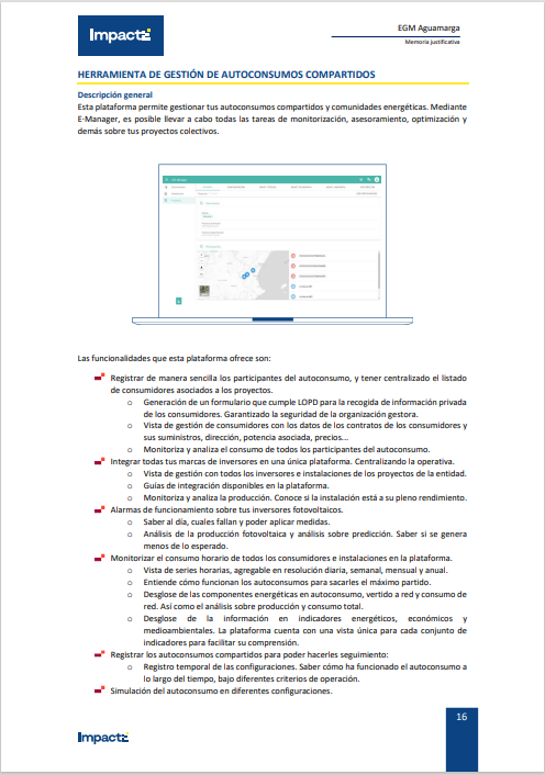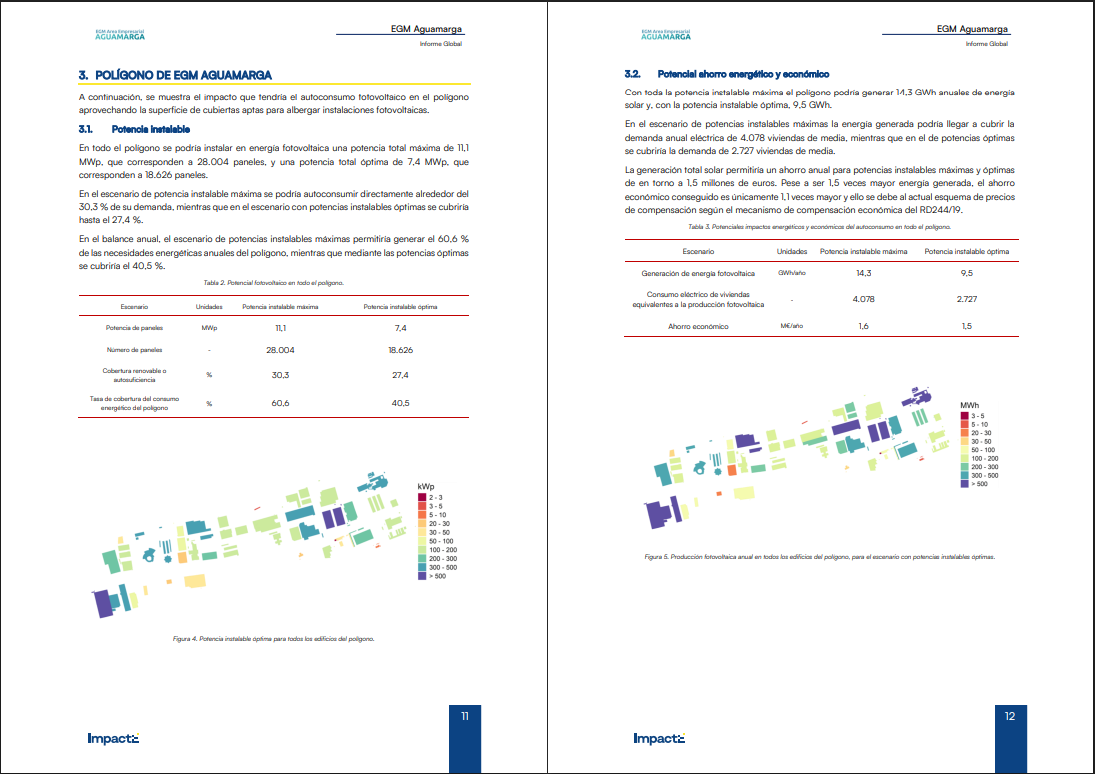 El Estudio de Potencial Fotovoltaico y Transición Energética del Área Empresarial Aguamarga analiza las cubiertas y consumos energéticos del área para impulsar un modelo energético más sostenible y competitivo. El objetivo es identificar el potencial real de generación solar, estimar sus beneficios económicos y ambientales y poner a disposición de la EGM y de las empresas herramientas digitales que faciliten la toma de decisiones y la puesta en marcha de proyectos de autoconsumo, compartido o individual, y de futuras comunidades energéticas.
