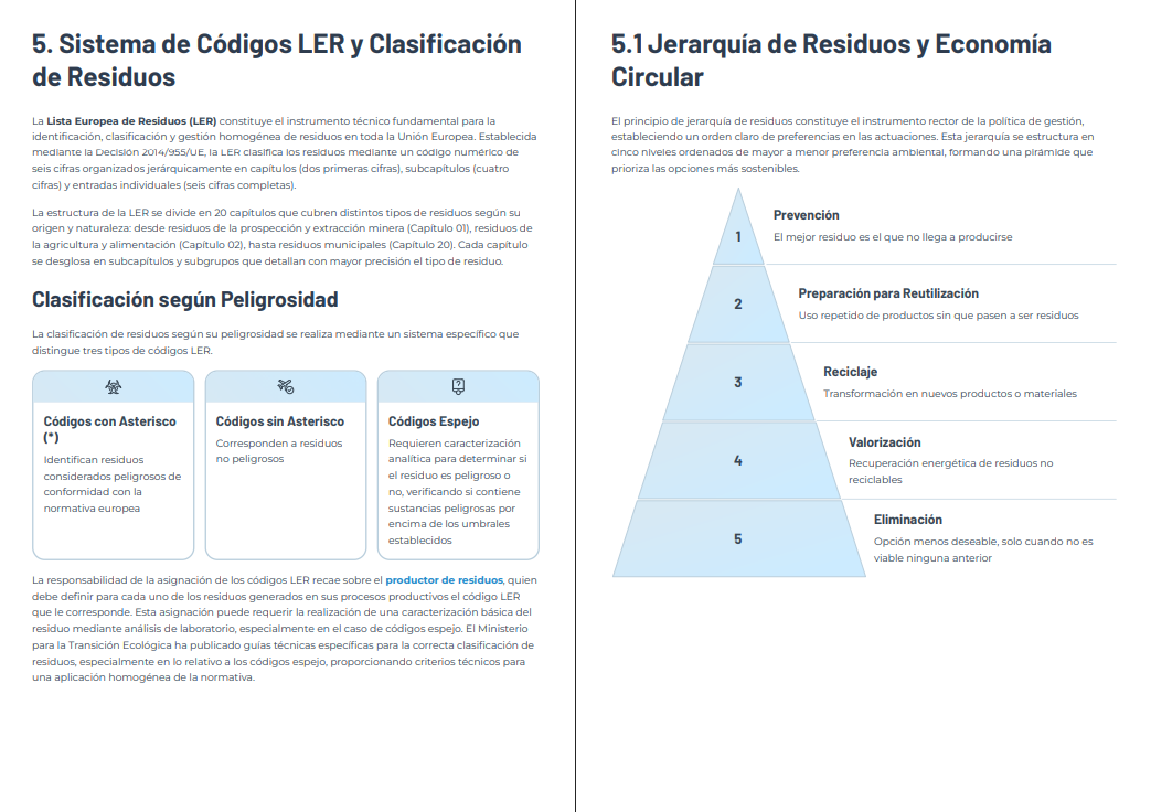 - Identificar y caracterizar los residuos generados por las empresas de Aguamarga, diferenciando residuos peligrosos y no peligrosos, y asignando códigos LER de acuerdo con la normativa vigente.